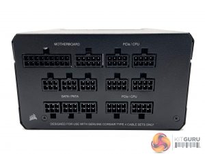 One side of the power supply is vented to aid with airflow. There is a power connector and switch beside the panel. The other side of the unit is home to the modular bay, clearly labelled to ensure easy installation of cables.