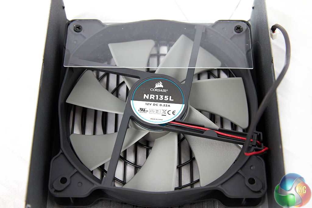 The RM1000x incorporates the NR135L 135mm fan – the same as the 750w unit. This is a rifle bearing fan rated at 0.22A. Corsair claim that a rifled bearing fan will provide longer life and quieter operation than ‘most' ball bearing fans. The blades of this fan are said to be properly balanced to help prevent resonance at higher speeds. There is a little plastic flap over part of the fan, to forceably direct the airflow across the hotter running components.