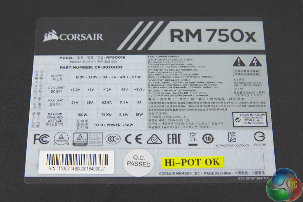 The power supply can deliver 62.5A on the +12V rail. The specifications above are actually identical to the RMi 750W which we reviewed back in June. The RM750x can deliver the full power over the +12V rail.