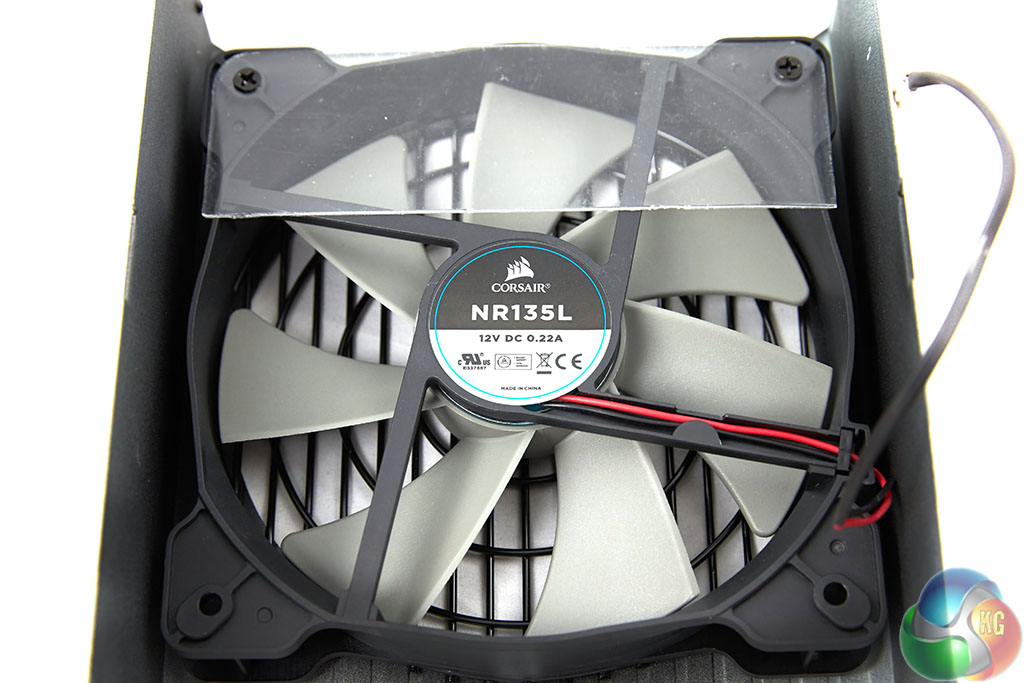 The RM750x incorporates the NR135L 135mm fan. This is a rifle bearing fan rated at 0.22A. Corsair claim that a rifled bearing fan will provide longer life and quieter operation than ‘most' ball bearing fans. The blades of this fan are said to be properly balanced to help prevent resonance at higher speeds. There is a little plastic flap over part of the fan, to forceably direct the airflow across the hotter running components.