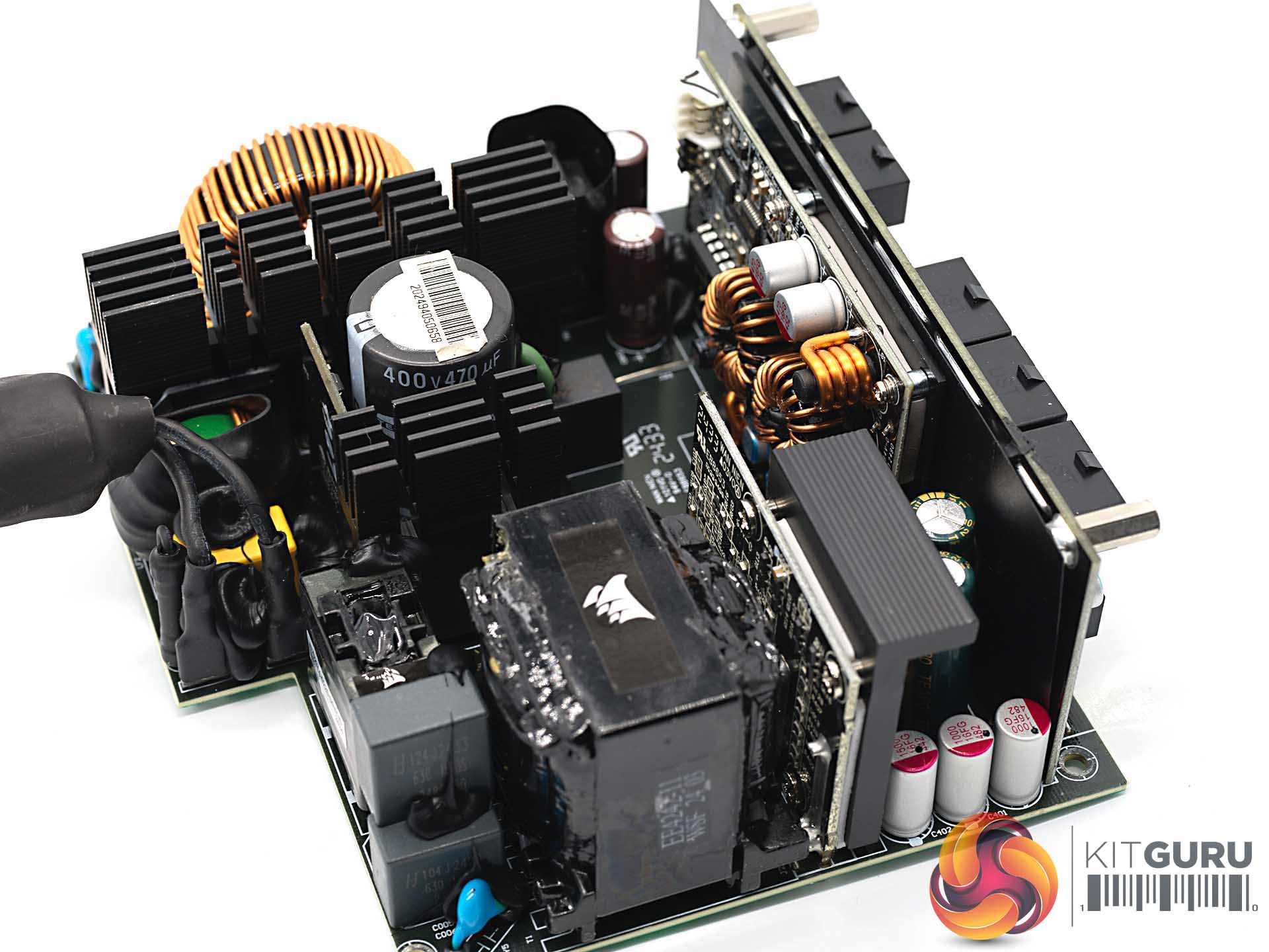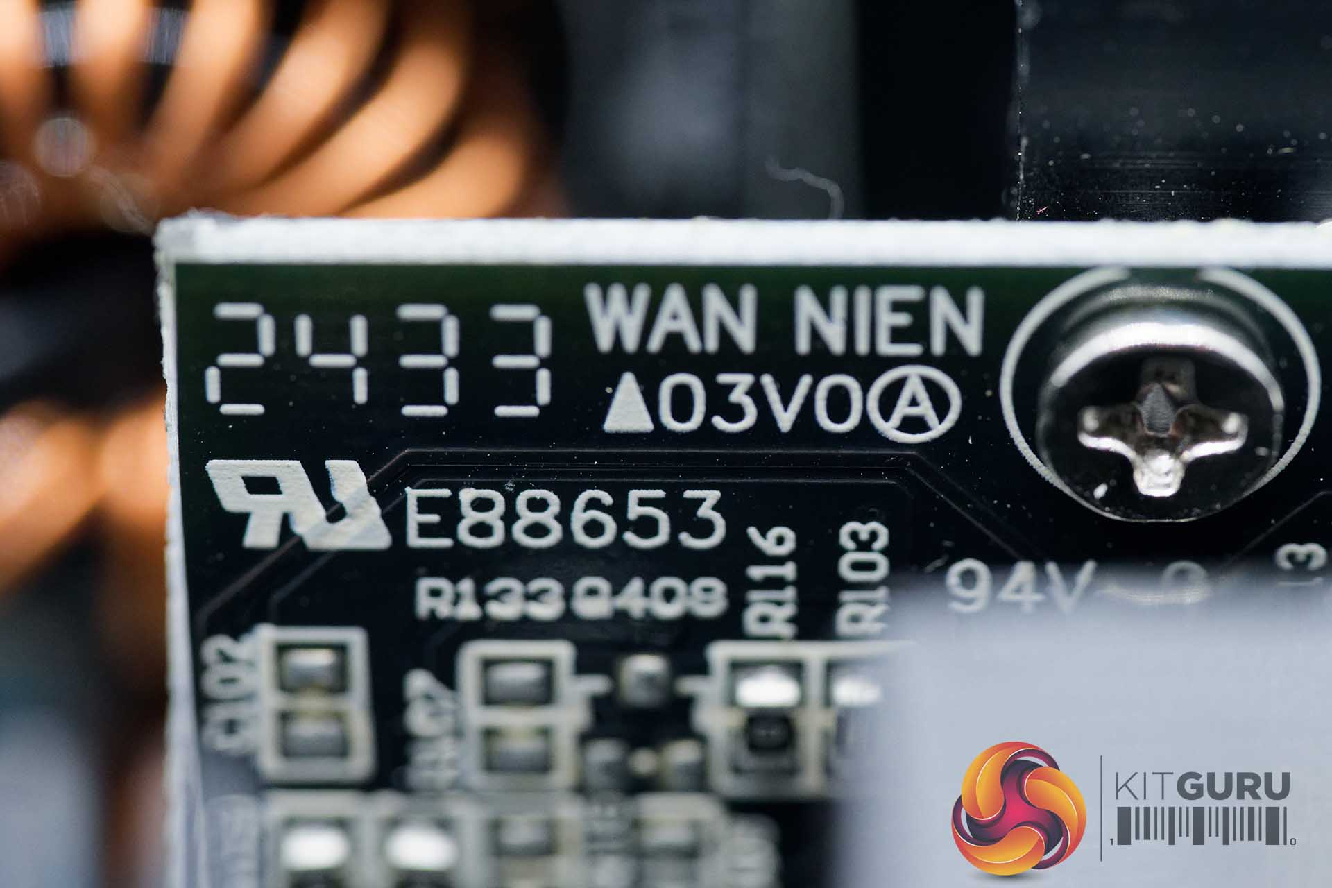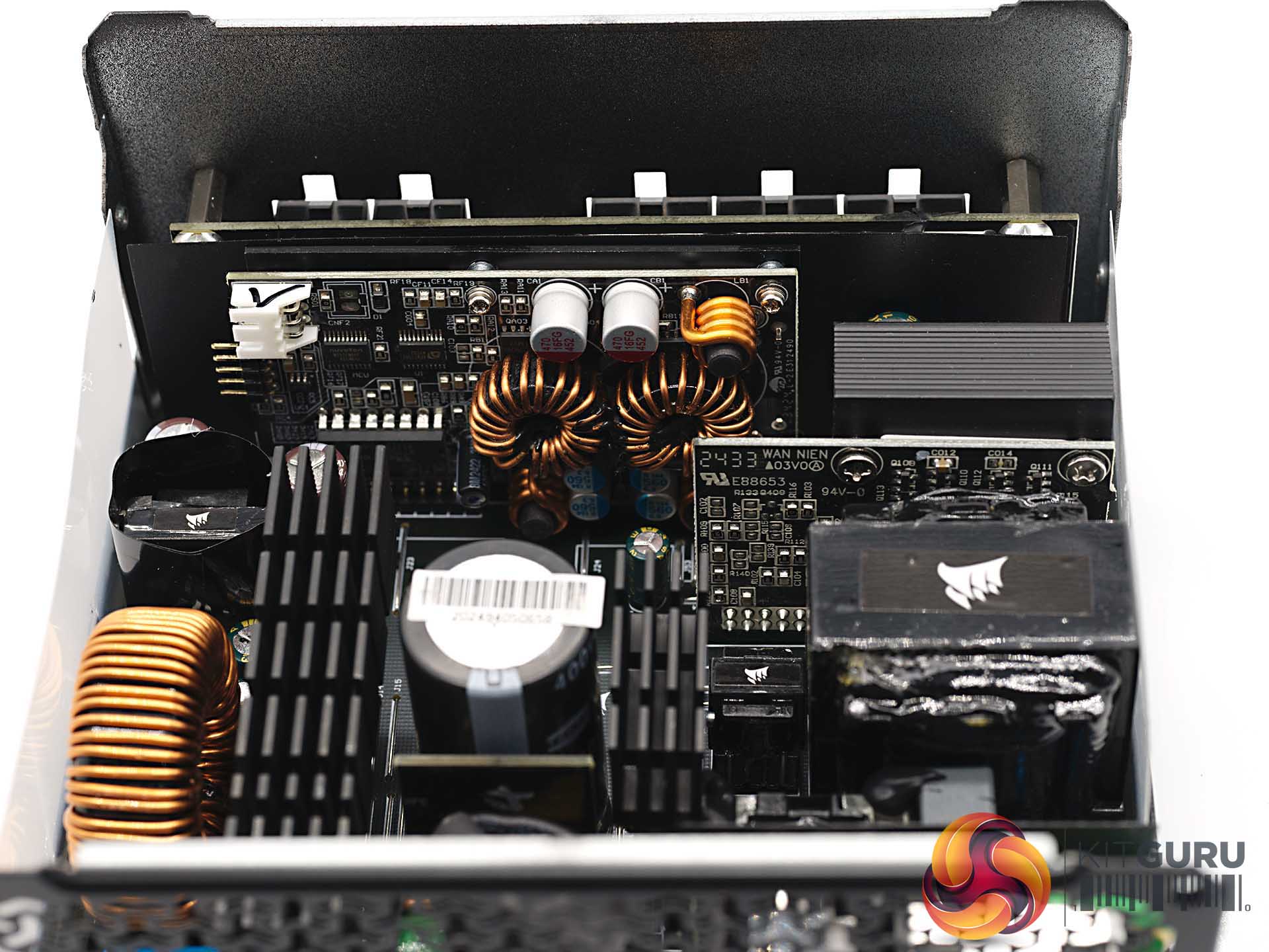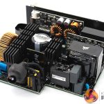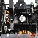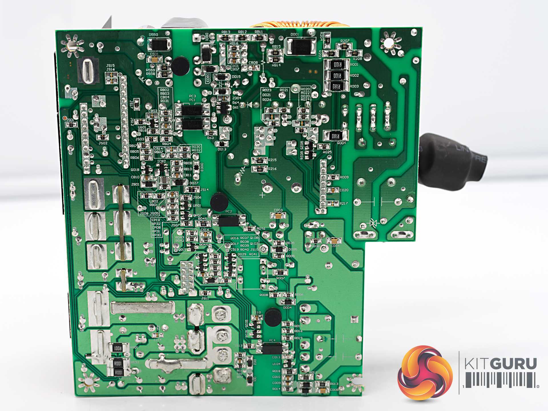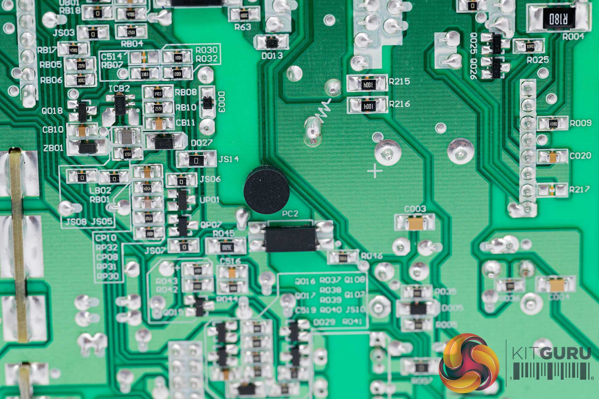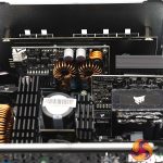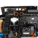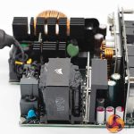 The PCB inside is quite small and densely populated with several large heatsinks to aid with cooling – this makes sense with vertical PCB boards mounted to the main one. One of the boards is home to the DC-DC converter to generate the minor rails.