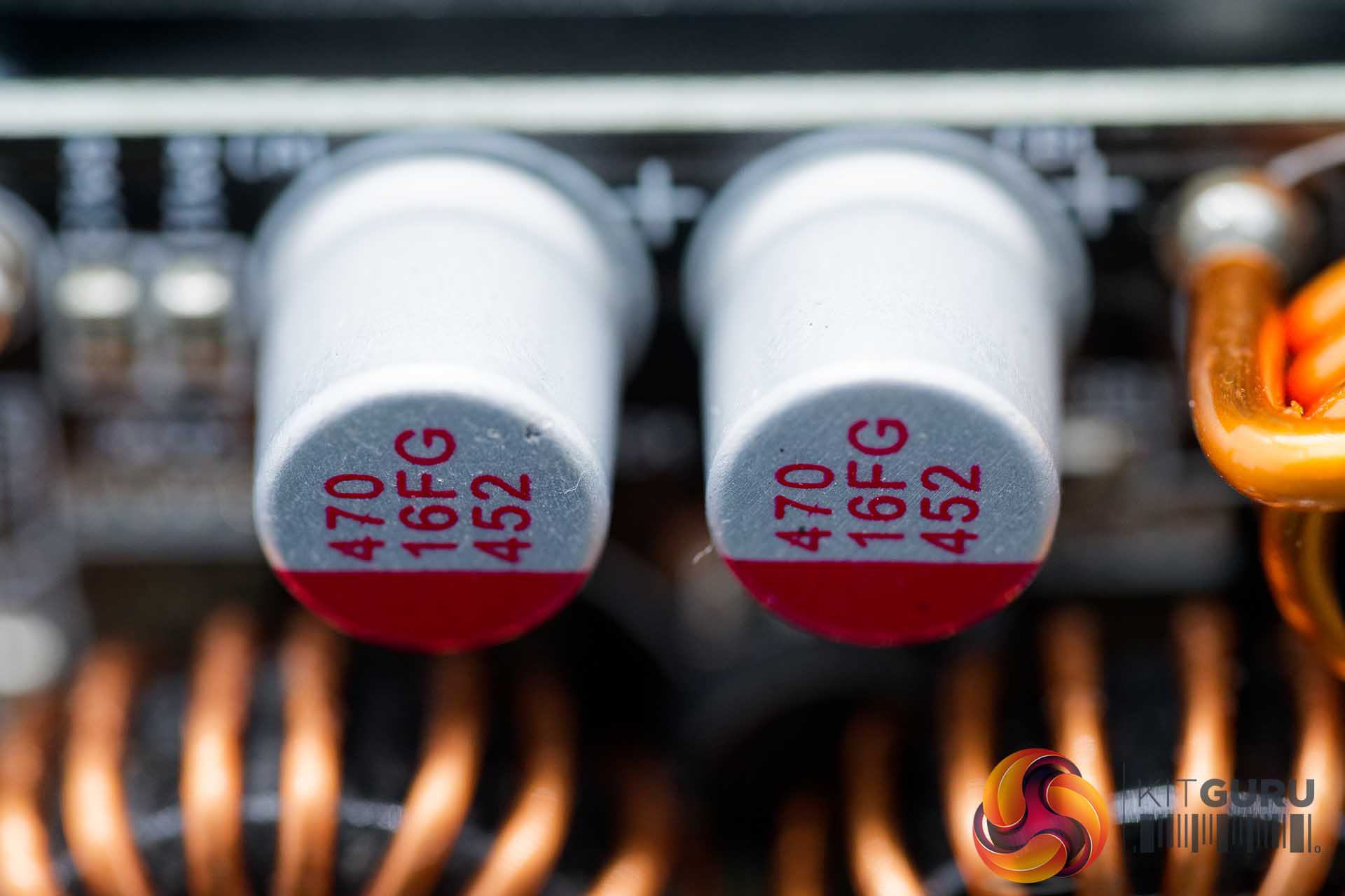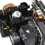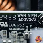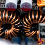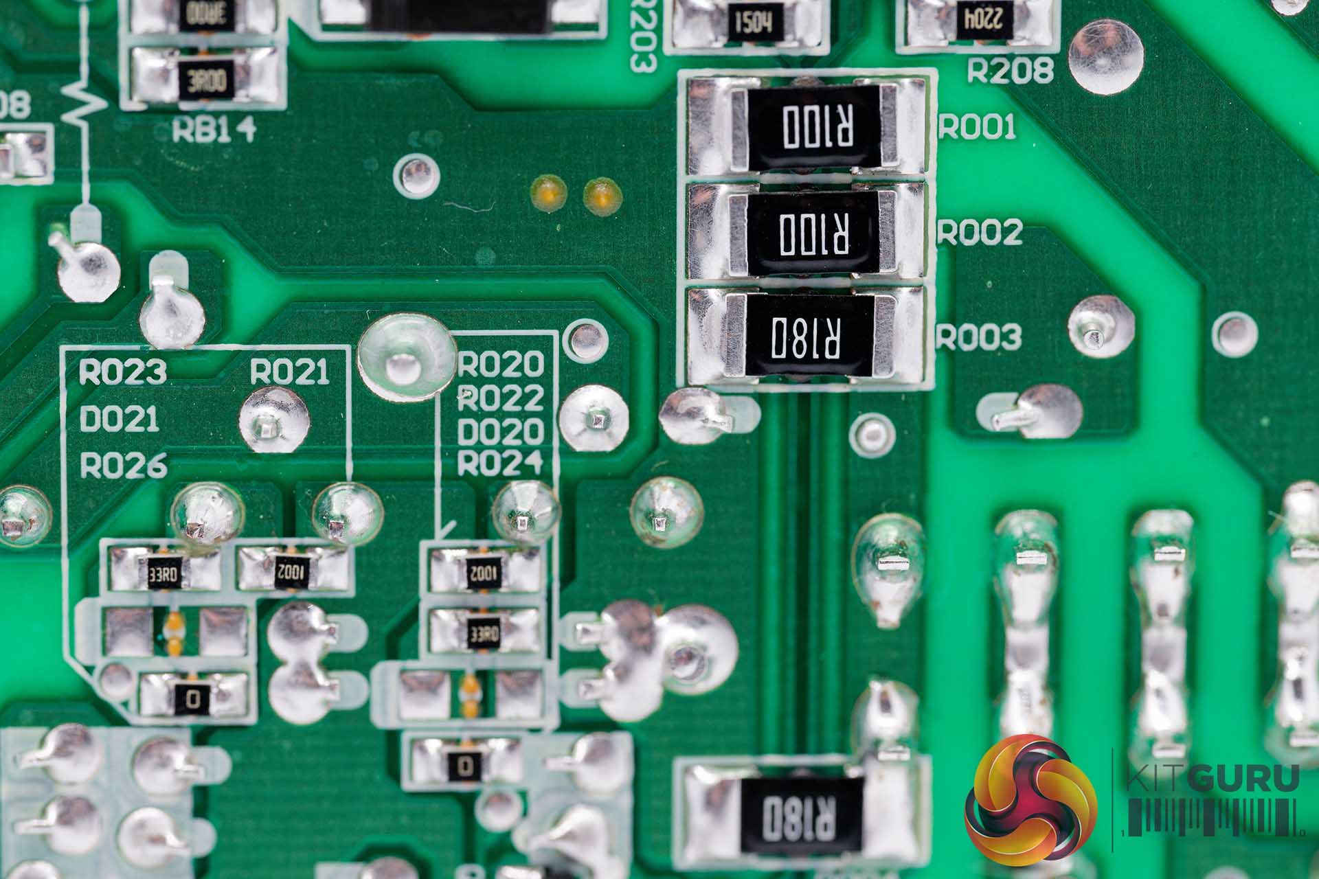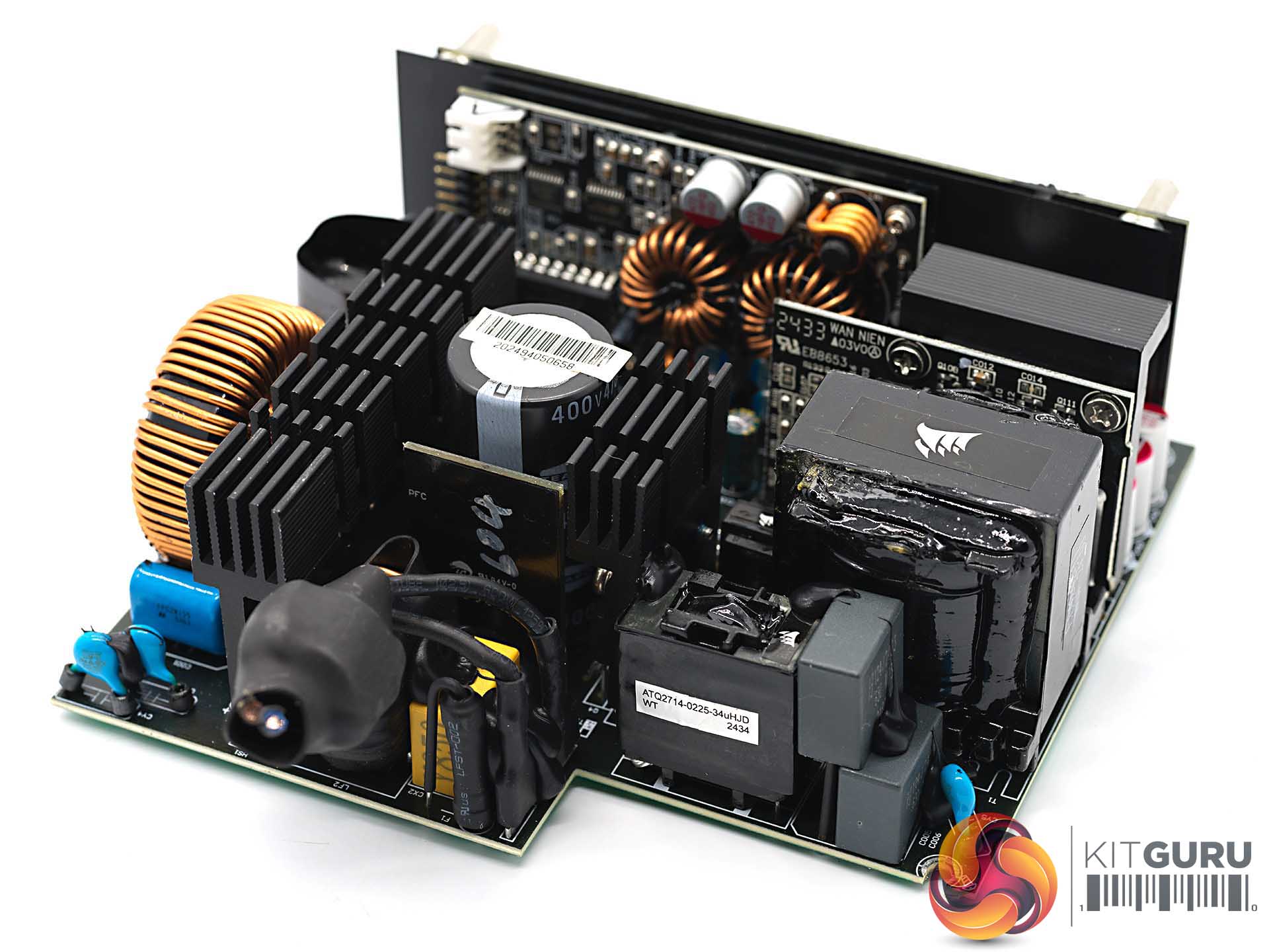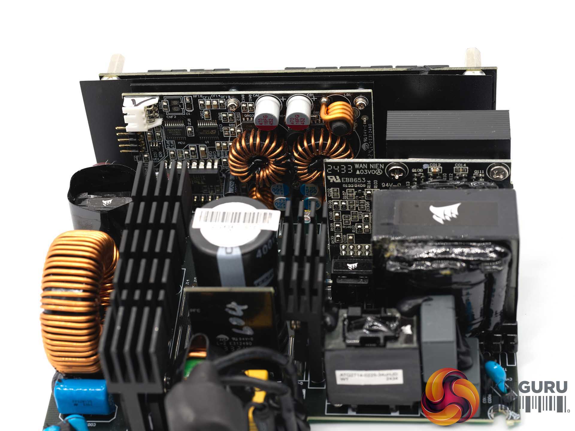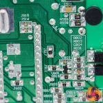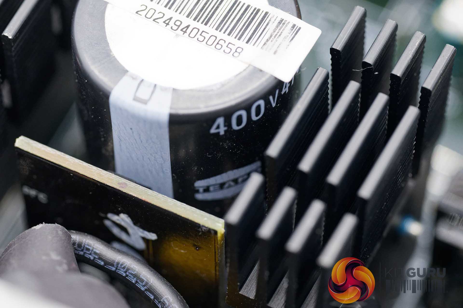 The PCB inside is quite small and densely populated with several large heatsinks to aid with cooling – this makes sense with vertical PCB boards mounted to the main one. One of the boards is home to the DC-DC converter to generate the minor rails.
