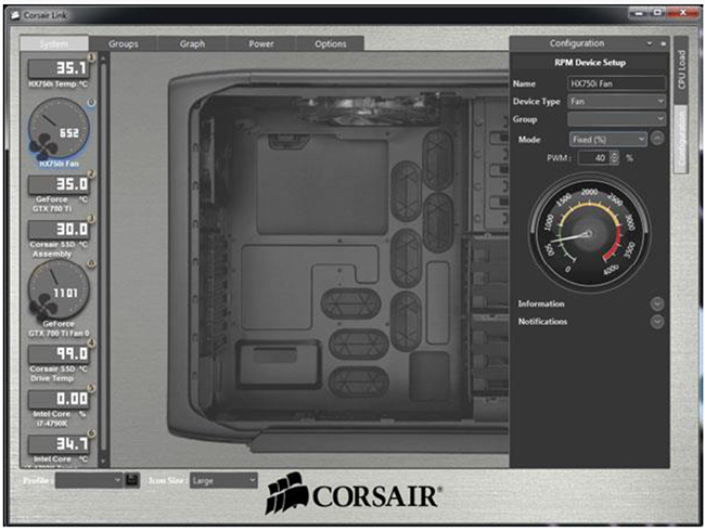 - Additional Corsair Link Control Capabilities: Create a custom fan profile and toggle +12V rail from multiple to single rail mode.