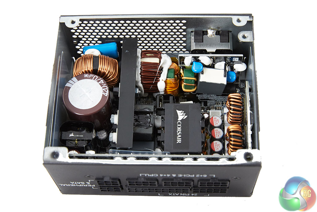Corsair are using a 105C Japanese grade capacitor from Nippon Chemi Con in the primary stage, rated 420V 470uF. This capacitor is from their KMZ series. There is full support for OCP, OVP, UVP, SCP, OTP and OPP.