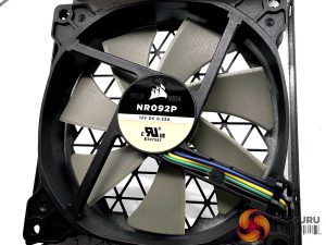 Corsair are using an NR092P fan, rated 0.22A 12V. This is a good quality FDB (fluid dynamic bearing) fan which we have seen several times in the past. There are no plastic strips on this unit to direct air flow to specific parts – it is just left stock.