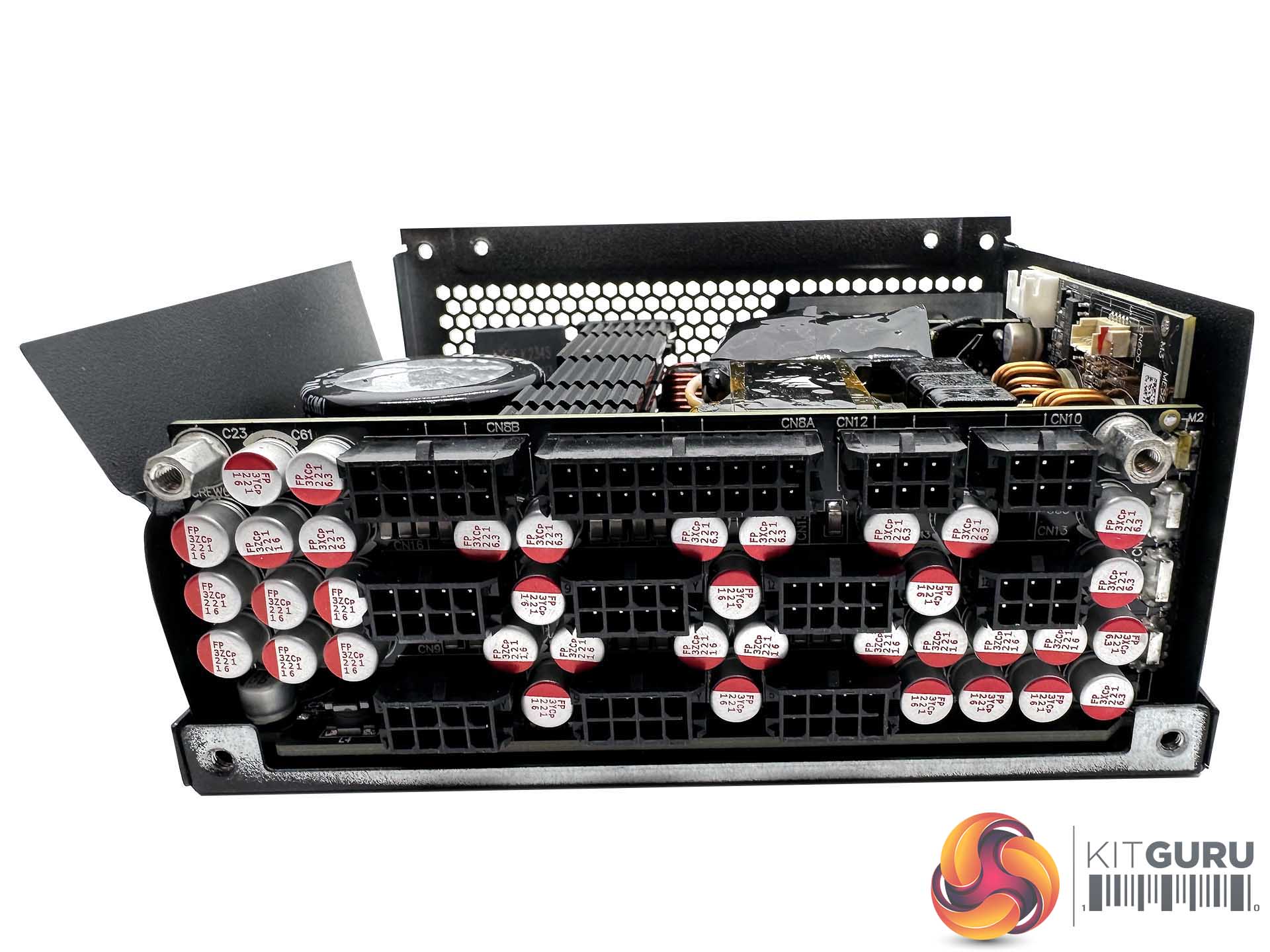 It is a half bridge topology design and an LLC resonant converter increases the efficiency levels via lossless switching. On the secondary side a synchronous rectification adopts eight FETs to regulate the 12V rail. As usual, the minor rails are generation via a pair of DC-DC converters via a PWM controller.