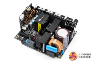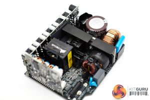 Corsair are using Great Wall as the partner for this particular power supply design. The layout, construction and overall design is very similar to the SF600 model in the range which we had a look at before. All of the electrolytic capacitors inside are Japanese made, which is good to see – especially as Corsair claim this in their literature. The primary bulk capacitor is made by Nippon Chemi Con rated for 470uF, 420C and 105C.