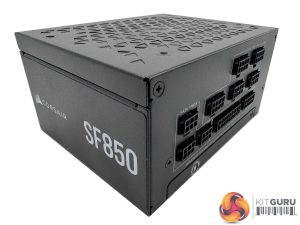 The Corsair SF850 is a tiny power supply measuring only 125mm x 100mm x 63.5mm (WxHxD). The finishing quality is high and neutral by colour with some silver white accenting on the lettering. The unit weighs around 0.965kg.