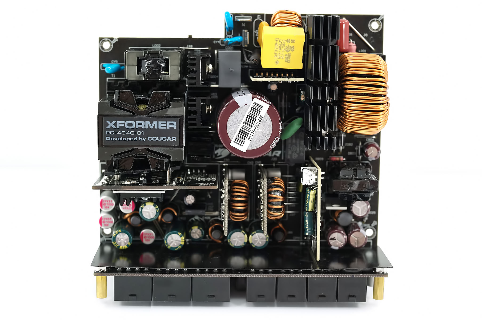 Even though no one is likely to ever open their power supply (as it will void the warranty) Cougar are keen to showcase the ‘Hydro Dynamic Bearing Fan'. Life is rated at 150,000 hours. Its a 12V 0.33A rated fan made in China.