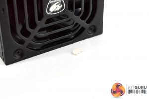 On the other side we have the modular bay, with all the cable positions clearly labelled. It was a little disappointing to see that instead of printing the port identities on the chassis – Cougar just placed a large sticker on the metal – ours was peeling off already as you can see in the image above.