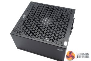 One side of the power supply is home to the modular bay, across three rows, and the other side is home to the power connector switch and the hybrid fan mode switch.