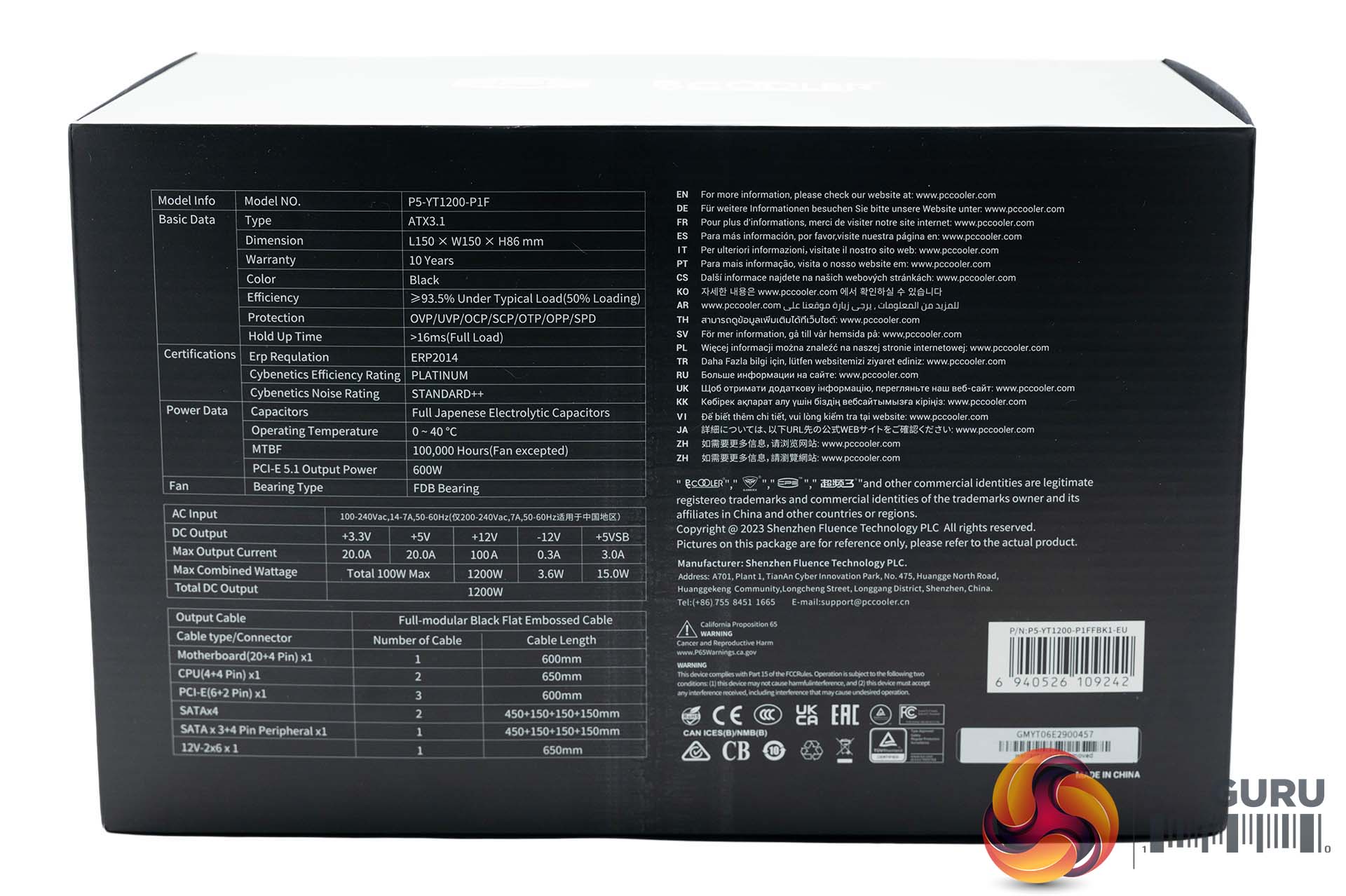 The YT1200 ships in a pretty nice-looking box with a high resolution image of the power supply on the front and some Cybenetics badges at the side. We prefer to see Cybenetics logos on the boxes rather than 80 Plus – it is a superior test platform.