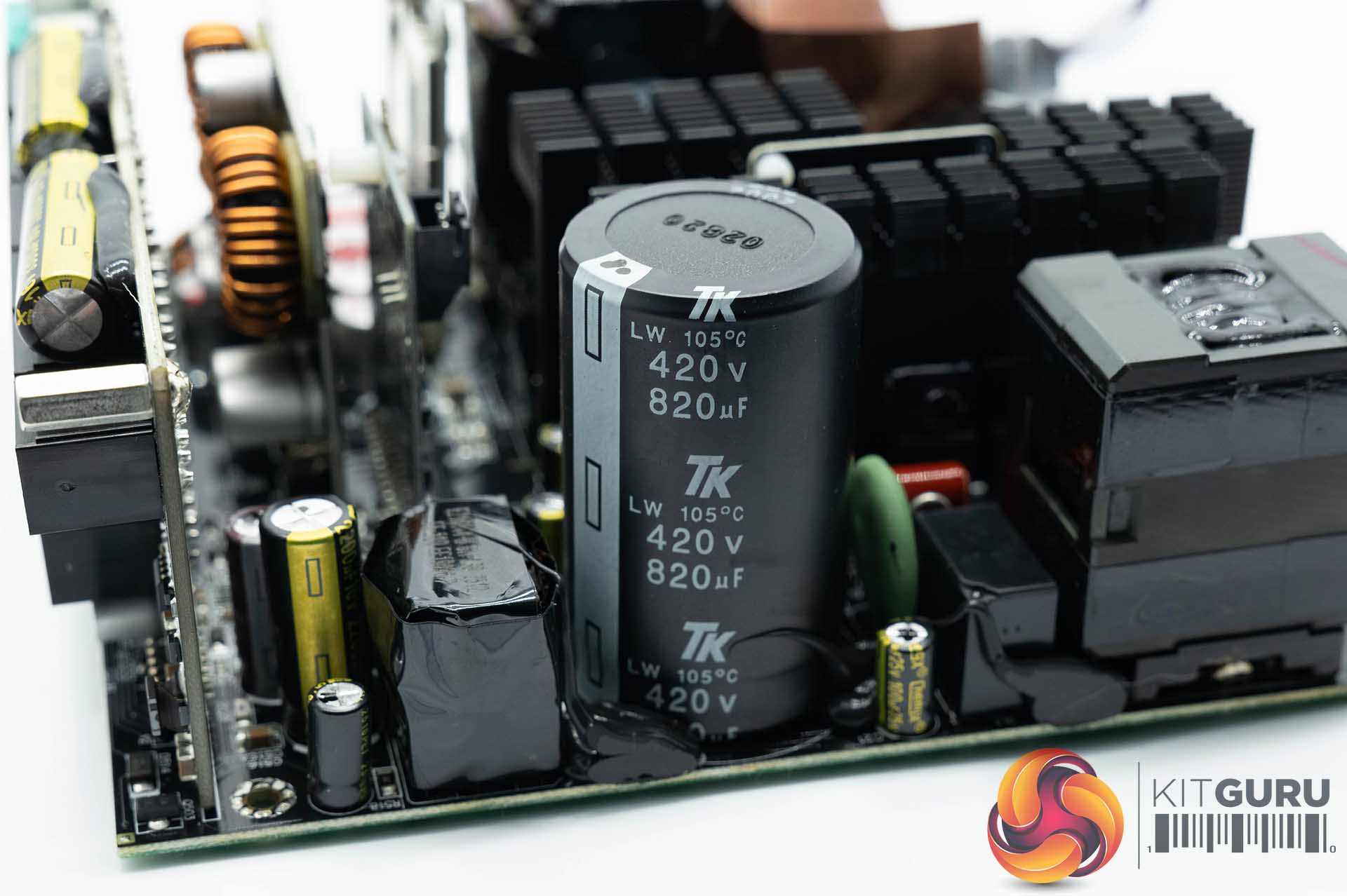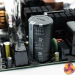 Build quality overall is pretty high and soldering quality on the main PCB is very good too. The primary stage capacitor is by TK – a company we don't often see in our power supply review tests. TK are a highly regarded Japanese brand and the primary 105C-rated cap in this unit is rated 420V with an output of 820uF. Caps on the secondary side are pretty good quality too (although not Japanese), from the likes of Elite and Chengx.