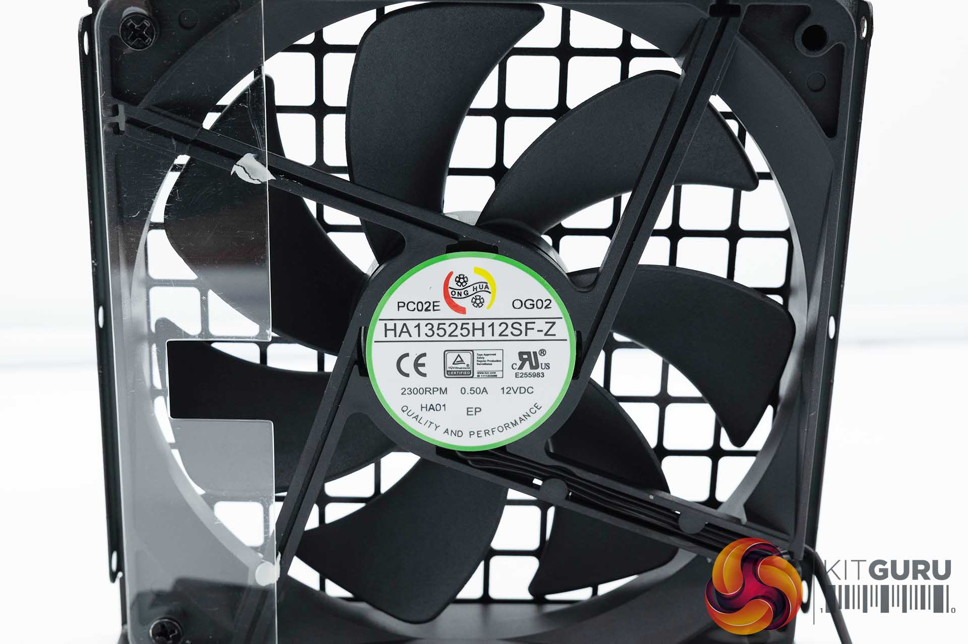 This unit adopts a 135mm quality Hong Hua HA13525H12SF-Z fan. This is a fluid dynamic bearing (FDB) fan, rated 12V, 0.5A with a maximum rotational speed of 2,300 rpm.