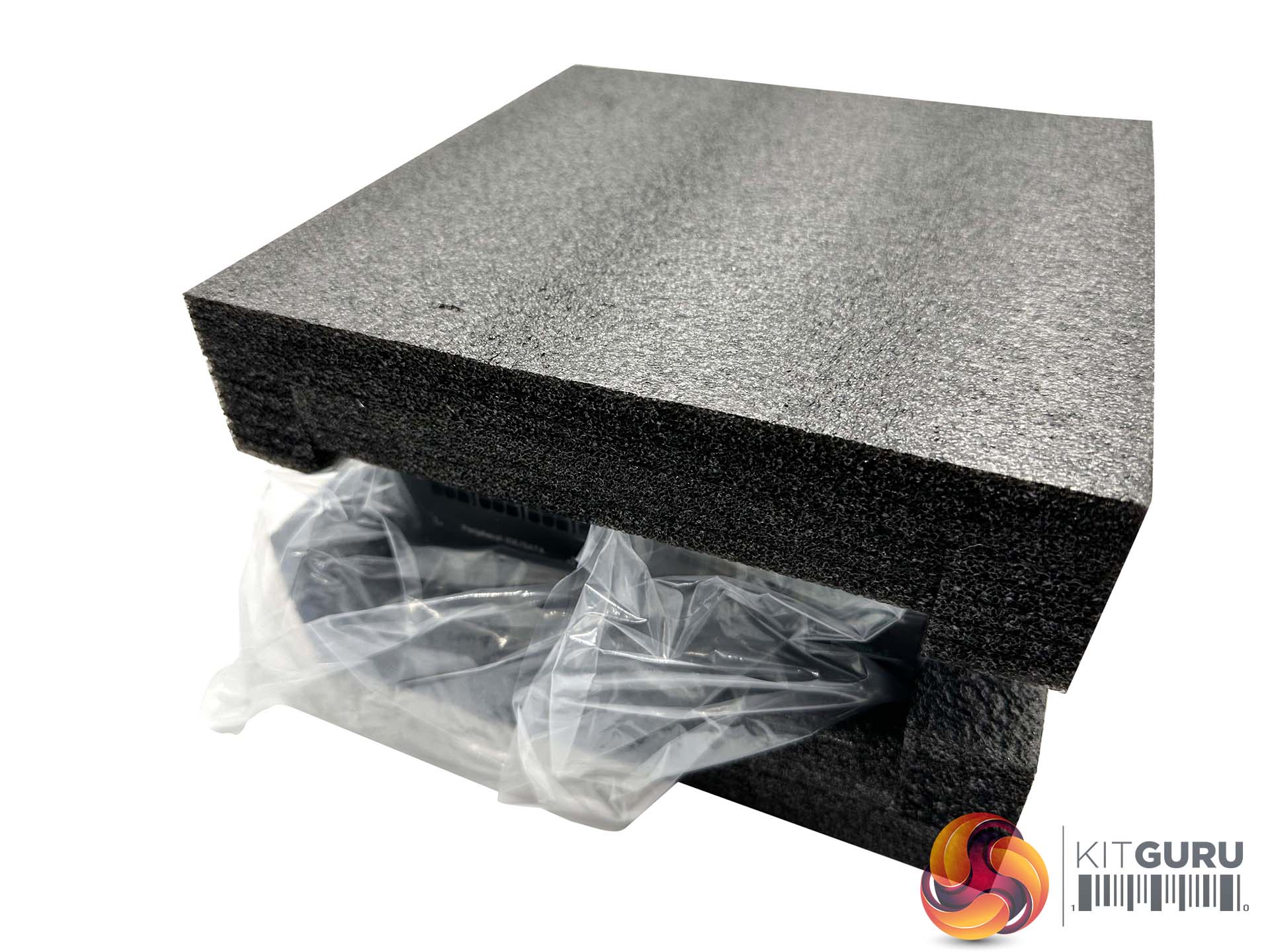 Inside the box, the main unit is sandwiched between two heavy duty foam slabs and the cabling is inside a smaller brown box.