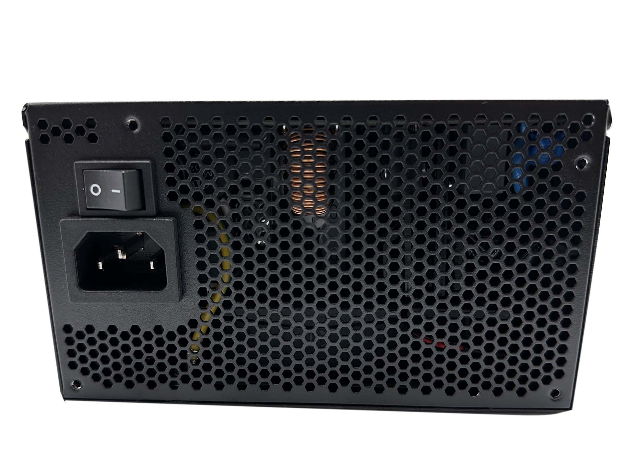 One side is home to the power connector and power switch, with a honeycomb vented panel to aid with airflow.