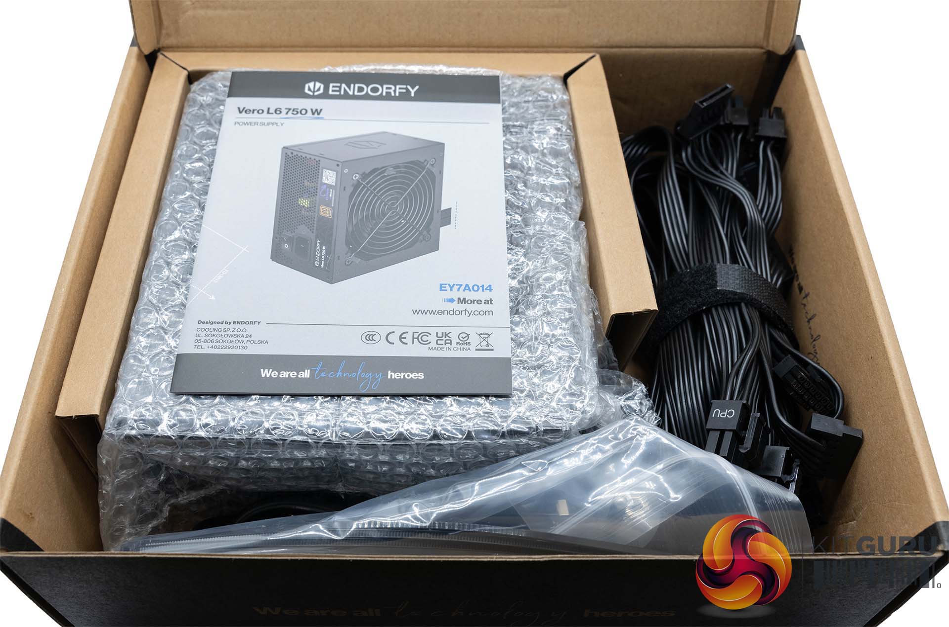 Endorfy are keeping the box artwork minimalistic, with line art style artwork of the unit on the front. There is an 80 Plus Bronze badge on the front, but no Cybenetics logos, which is strange.