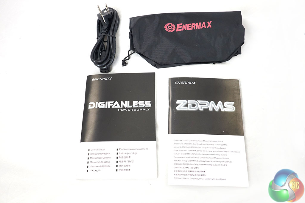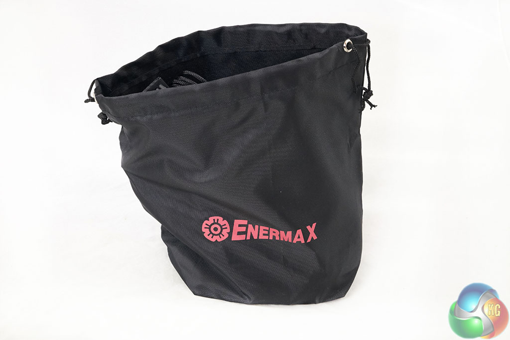 Enermax include a regional specific power plug and a storage pouch for any left over cables. There is also a little metal clip called the ‘CordGuard' which secures the power cable to stop accident removal during operation.