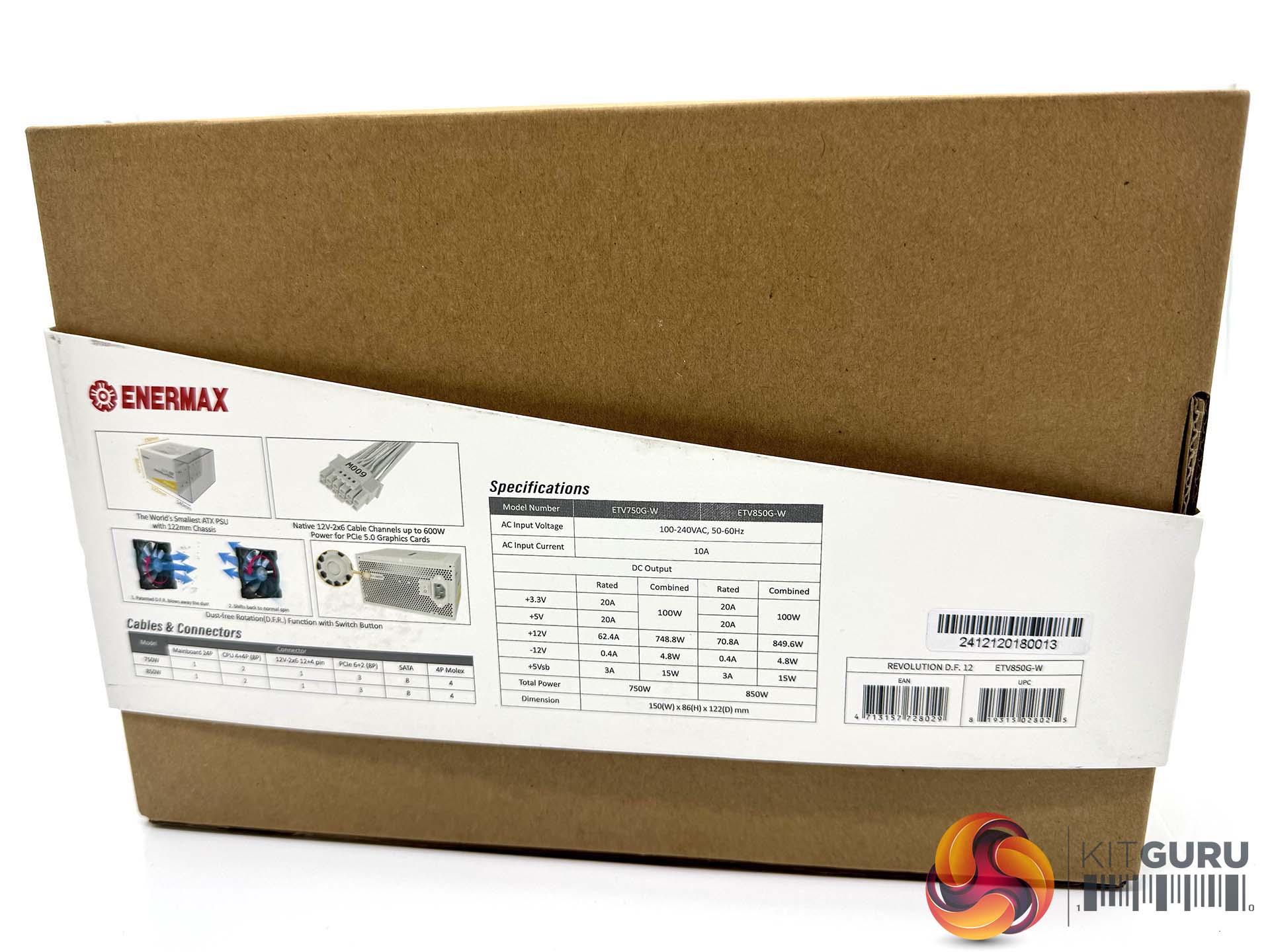 The rear of the box highlights the ‘Dust Free Rotation' Tech, along with cable details, and power supply output figures.