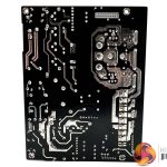 The PCB in this power supply is tiny, so therefore it's densely populated with components. OEM partner RSY have adopted various daughter-cards to compensate for the tiny physical width of the main board. Two Japanese 105C rated capacitors by Rubycon make up the primary stage – rated 270uF 420V, for a total of 540uF.