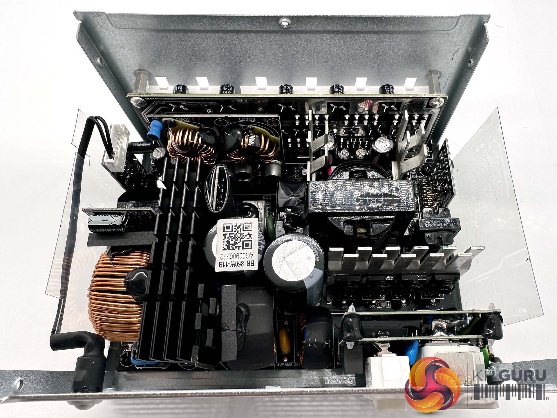 The design incorporates a PFC converter with a full bridge topology with a LLC resonant converter. Minor rails are generated via four FETS which regulate the 12V rail, feeding into DC-DC converters. Soldering on the board is very good, with an overall clean design throughout.