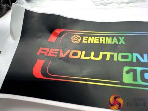 Unfortunately Enermax only wrapped the sample box in plastic so it had a few impact knocks on the side of the box – and the sticker inside took a hit as well. This sticker can be applied to the power supply to add a bit of colour if you aren't interested in the RGB effects.
