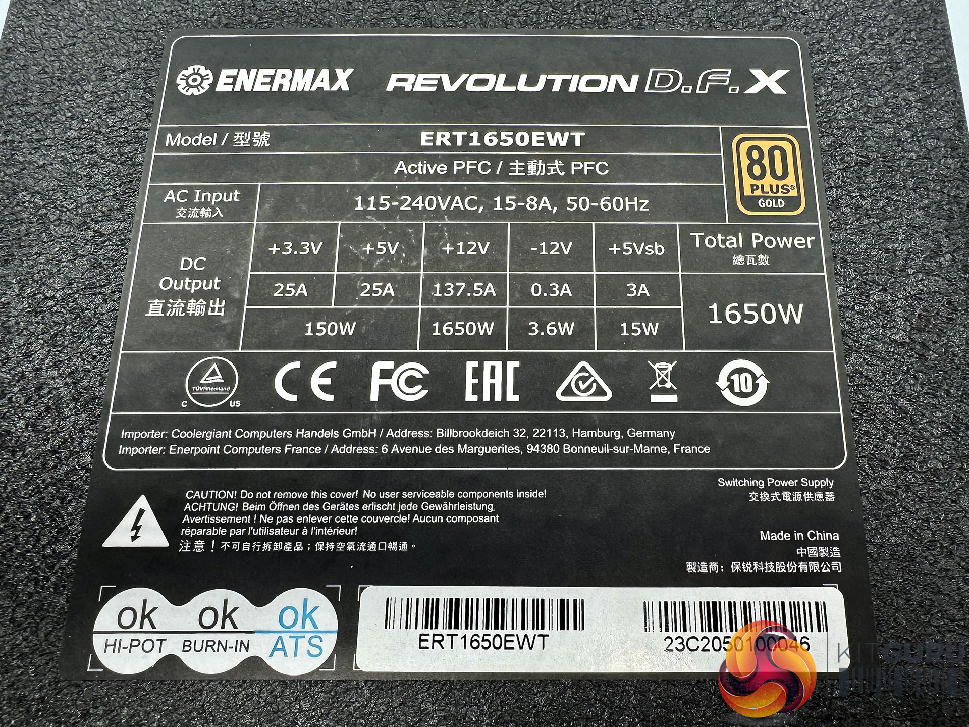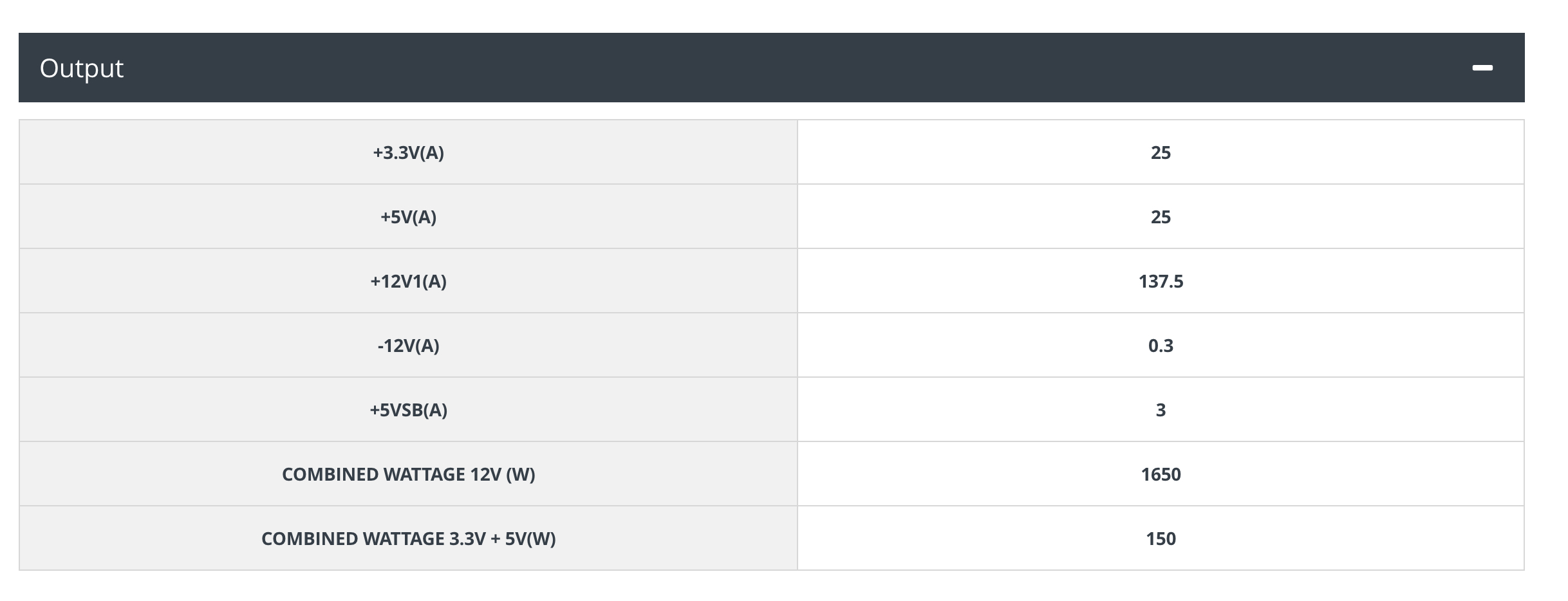 Yes, you read that right – a 137.5 Amp delivery via the +12V rail. Both secondary +3.3V and +5V rails deliver 25 Amps.