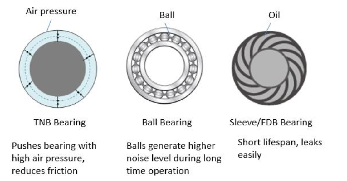 It is said that a Teflon Steel bearing fan will hold consistent noise levels over the life of the bearing.