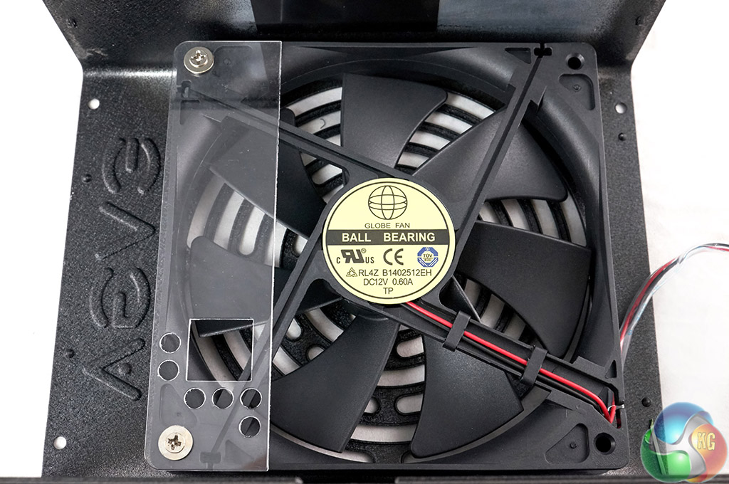 The fan is a ‘Globe' double ball bearing model, number RL4Z-B1402512EH. This is rated 12V, 0.6A with a maximum speed of 2,000 rpm, airflow 153.47cfm. Maximum noise rating is officially 39.5dBa. We will measure noise later in the review.
