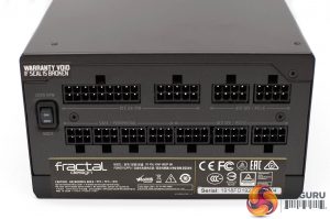 The single +12V rail is able to deliver 71.6 Amps for 860W of the total load. Interesting to see that Fractal have placed the power characteristic sticker on the rear of the chassis – this can be seen from the outside of the system build when the power supply is installed.