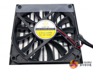 Fractal are using a 120mm Fluid Dynamic bearing fan by Globe, model number S1201512HB – rated 0.45A, 12V. Its a pretty good quality fan and a good decision by Fractal.