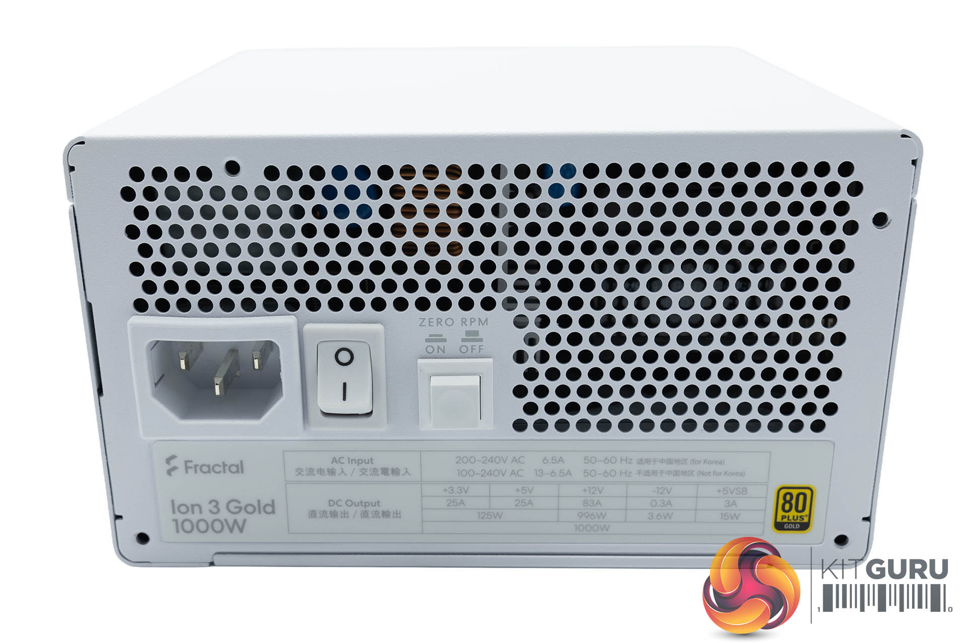 The Ion 3 Gold delivers 83A on the +12V rail, with 25A available from the +3.3V and +5V rails. This is a pretty traditional kind of setup for a 1000W unit.