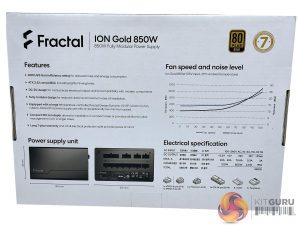 The rear of the box is home to some technical data, showcasing the efficiency level, the DC-DC and modular design, alongside the adoption of a large 140mm fan and the 7 year warranty.