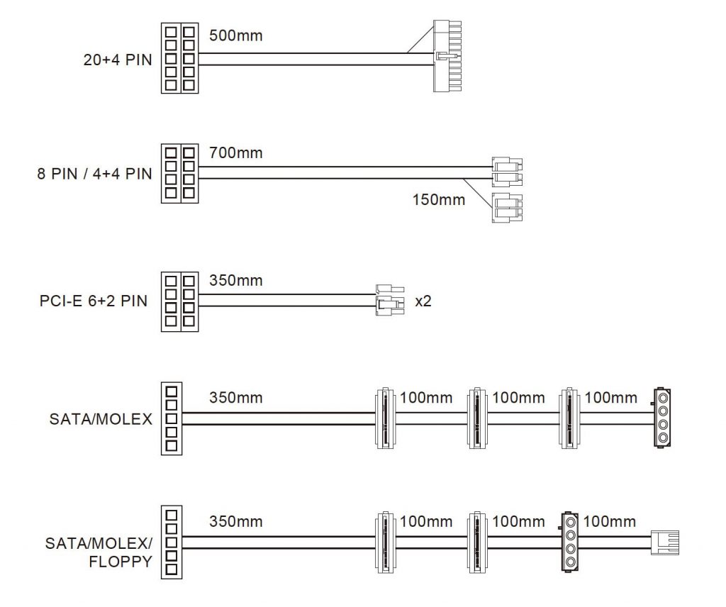 We can see the cabling between 550W and 650W units is the same, however the higher 650W model also includes an 8 PIN CPU power connector, to go along with the 4+4 pin cable. Both units have two 6+2 pin PCIe cables to support a high end graphics card.