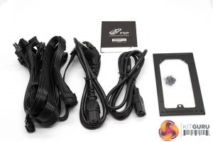 The box includes a power cable, some stickers, the modular cables, mounting screws, and an ATX adapter mounting bracket. The cables are all ribbon style for ease of routing, which is good to see considering the (potentially) smaller form factor builds.