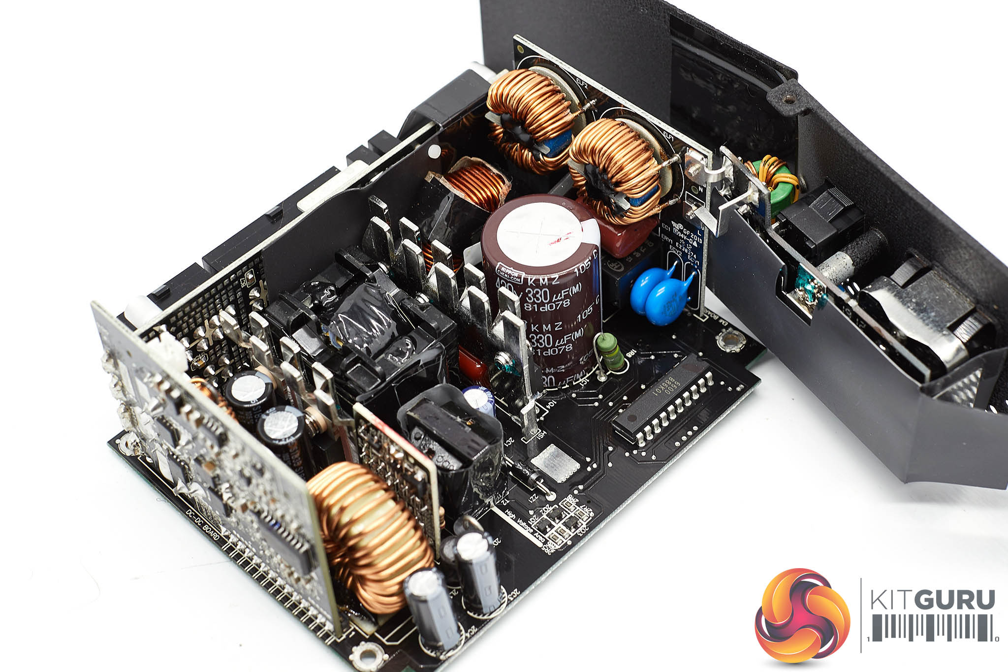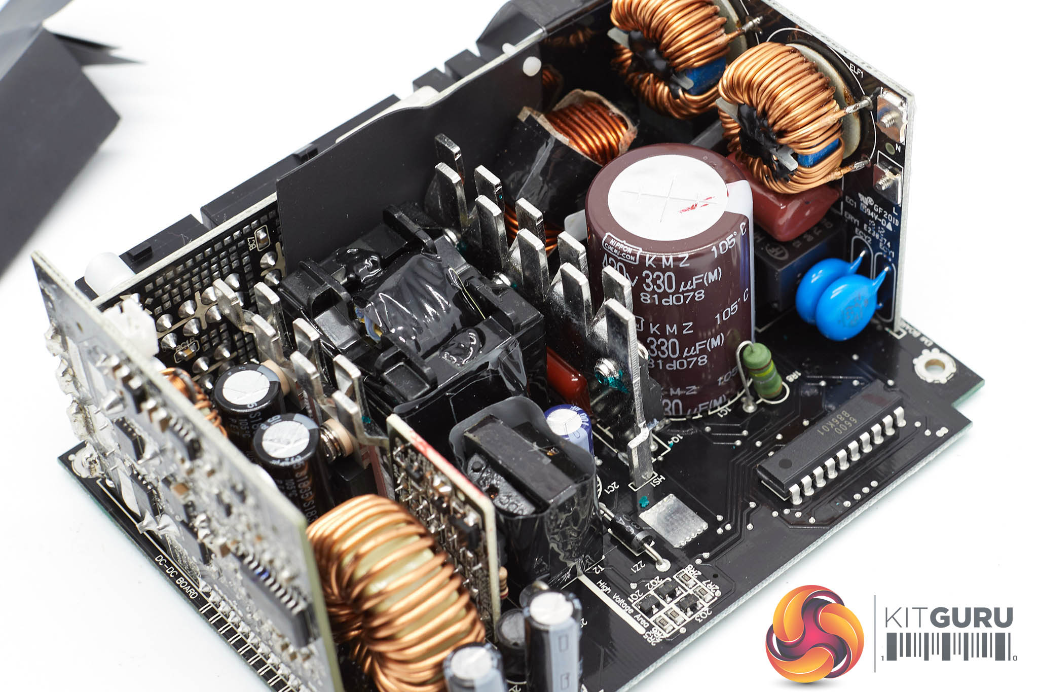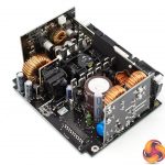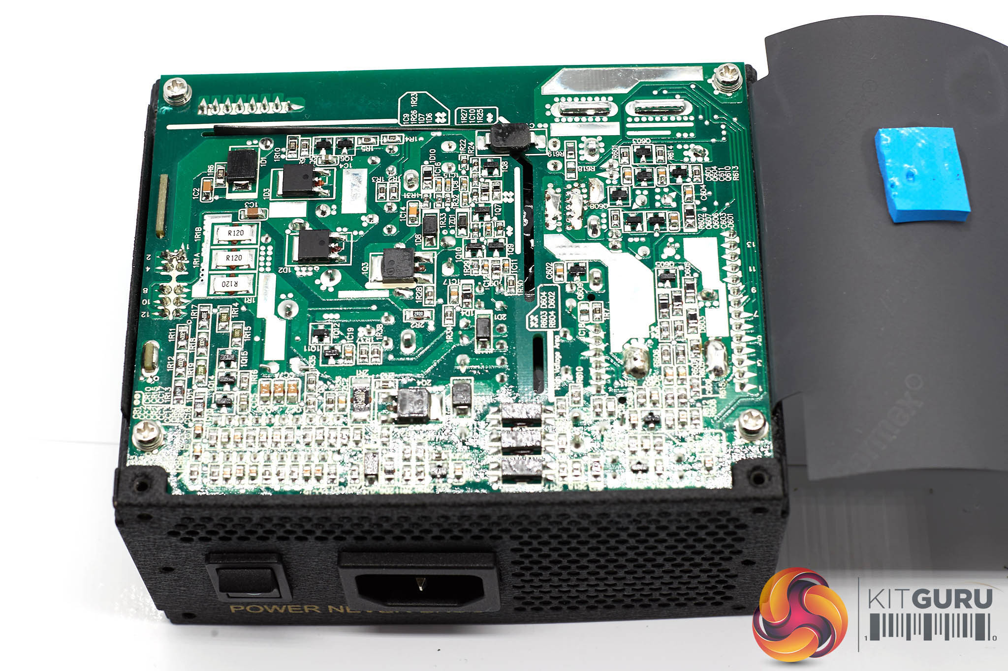 This FSP design has a couple of heatsinks in key positions, to help with cooling. FSP have adopted Japanese capacitors throughout both primary and secondary stages, with the primary hold up cap being a 105c Nippon Chemi Con rated 420V 330uF from the KMZ family. Rubycon are also used in the secondary stages. These are all quality capacitors.