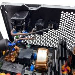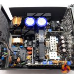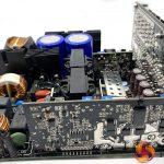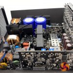 This single rail DC-DC design is using high rated Japanese capacitors throughout the design. Due to the high levels of efficiency there are only a few heatsinks in specific locations to aid with cooling. FSP are not using a partial plastic shroud between the fan and components to direct the airflow.