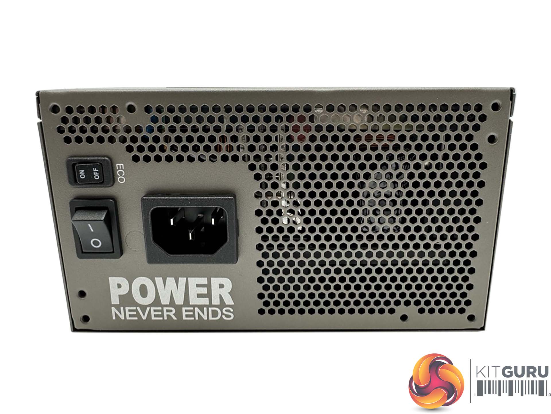 The other side of the PSU chassis has the power connector, power button, ECO switch and venting to aid with cooling. The text ‘power never ends' is showcased under the power socket. Doesn't make a lot of sense, but some Asian manufacturers seem to love these non-sensical slogans on their products.
