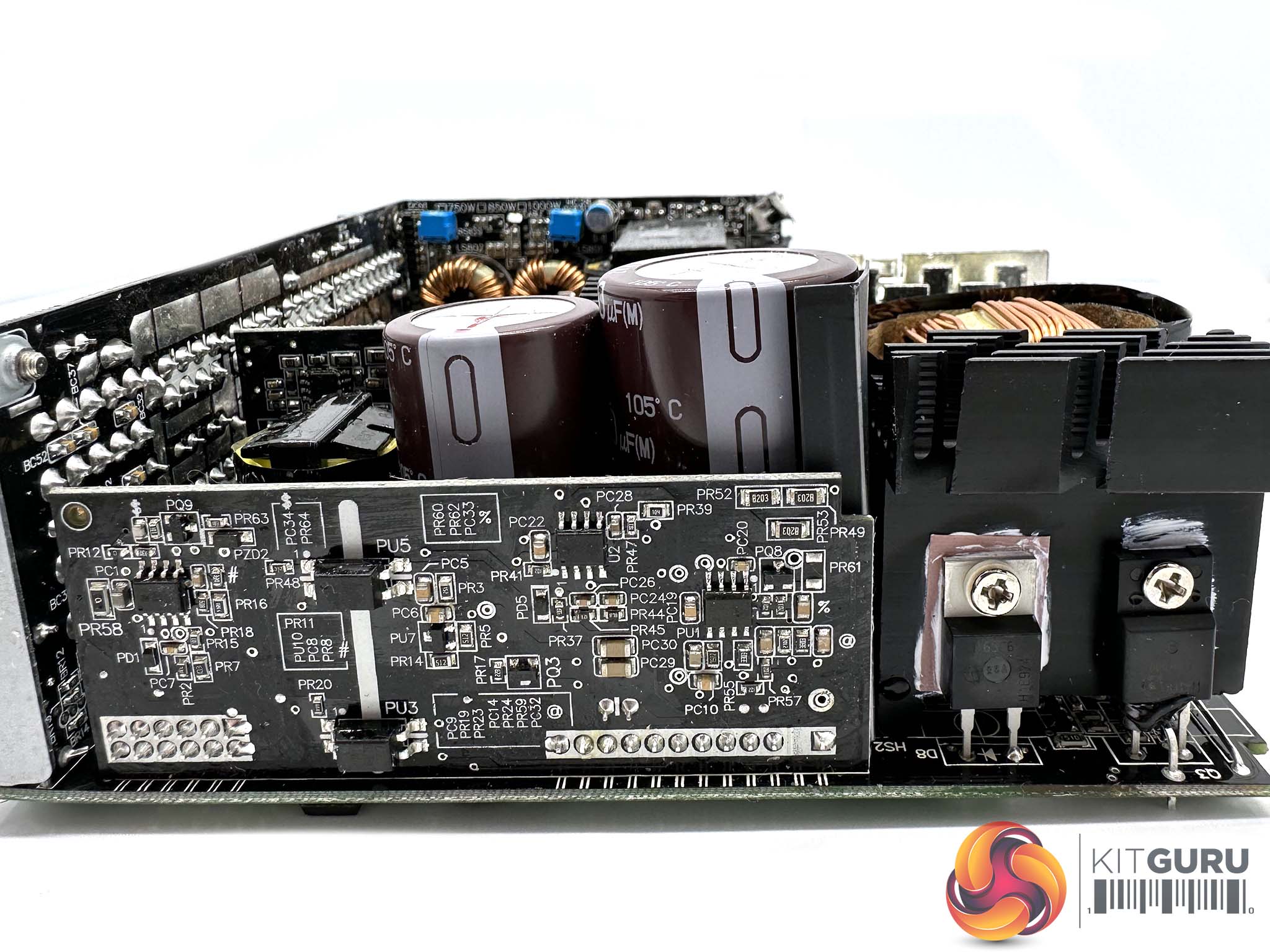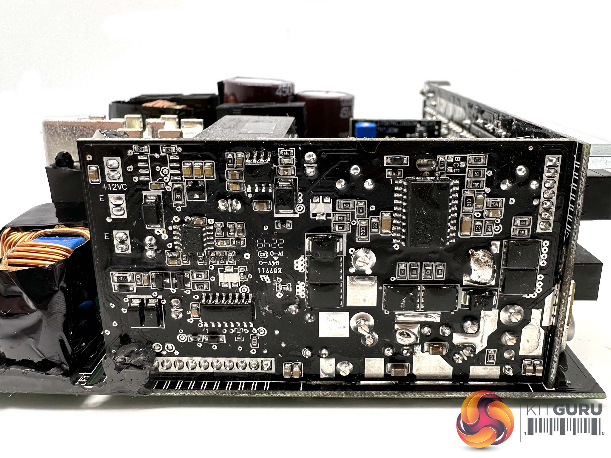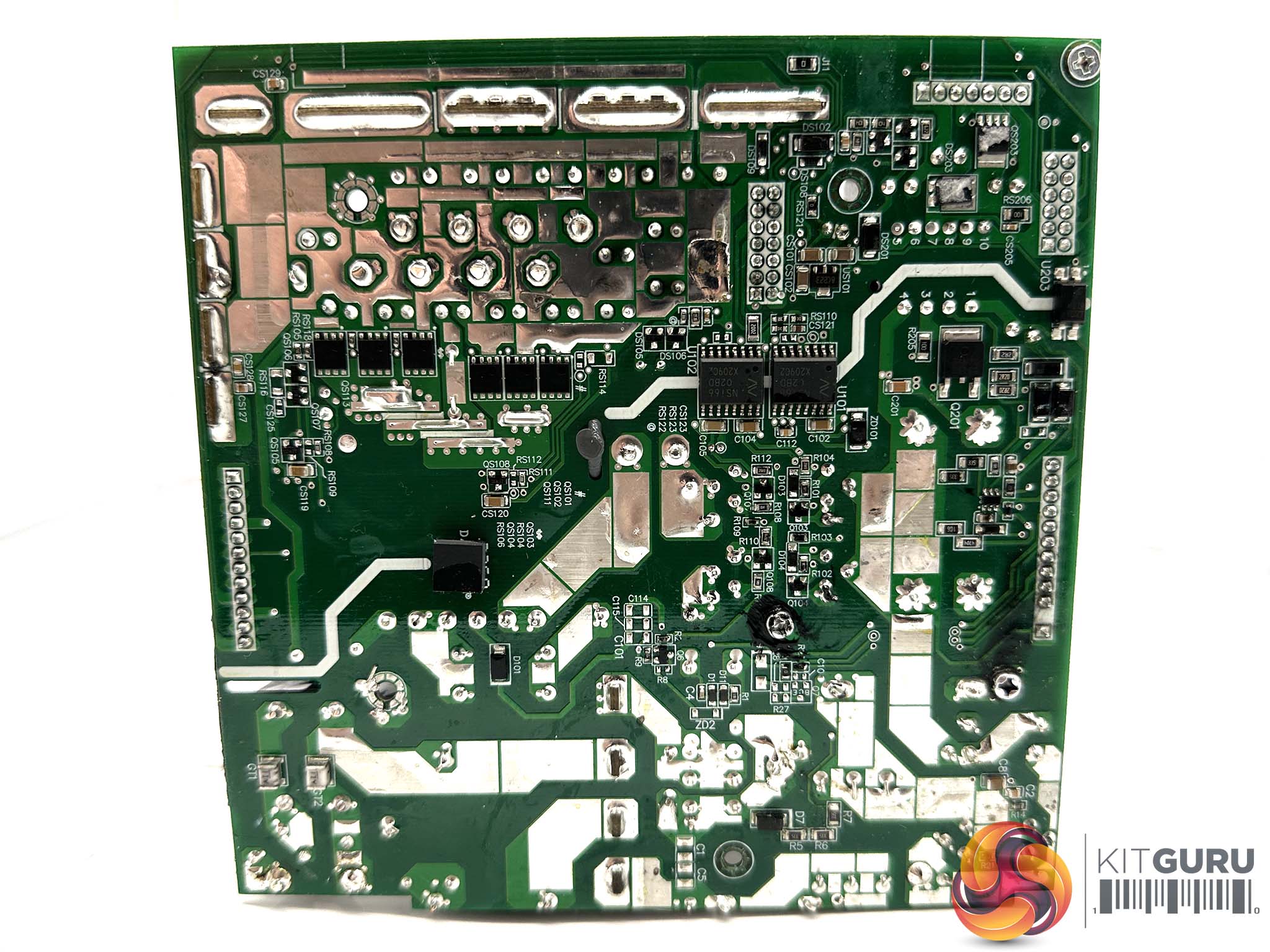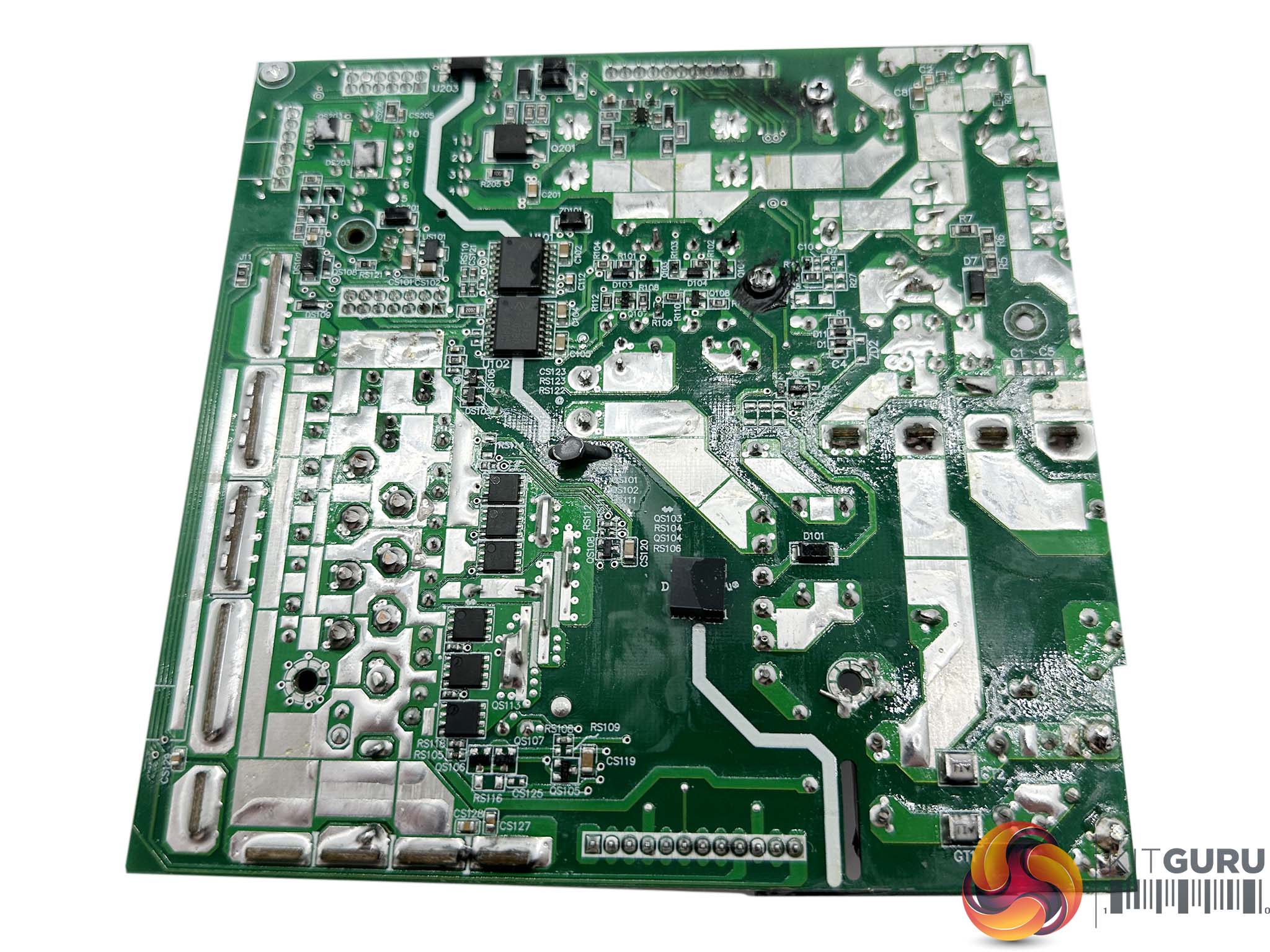 There are a handful of vertical boards slotted into the main PCB which are home to some important components. Soldering quality is high throughout. Due to the extremely high efficiency of a Titanium power supply, there is also no need to populate the PCB with a lot of heatsinks.