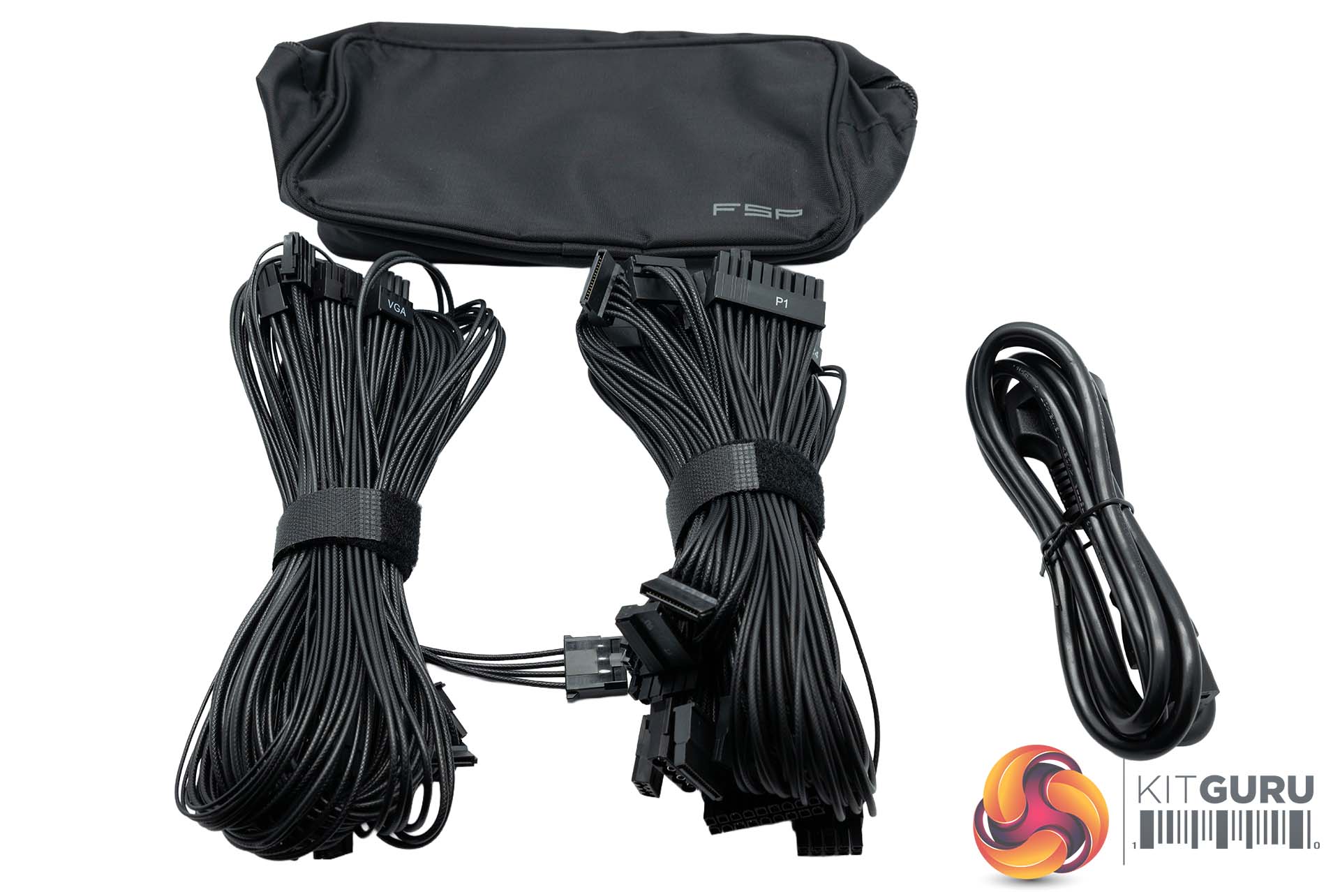 The cables are shipped wrapped into two bundles, with a power cable alongside. They also supply a storage pouch for the cables you don't need.