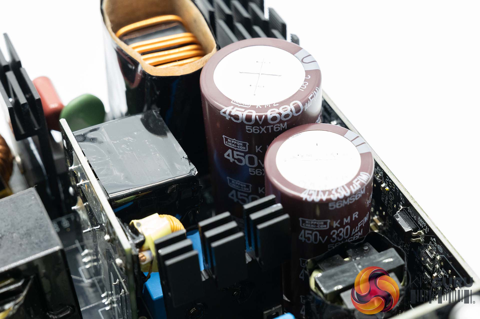 The transient filter is comprised of 2x Y Caps, 3x X Caps, 2x CM chokes and 1x MOV. We are happy to see FSP using quality Japanese capacitors in both primary and secondary side. The two main primary stage capacitors are 105C-rated Japanese caps from Nippon Chemi Con, rated 420V 680uF and 330uF for a total of 1010uF.