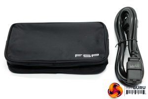 FSP include a little storage pouch, a big C19 power adapter cable, some literature on the product, a PSU testing and some cable ties.