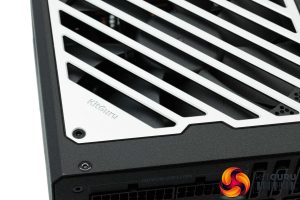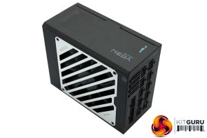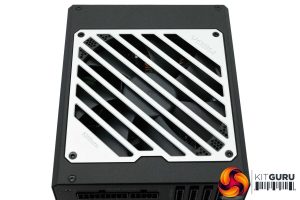 The top of the power supply has a rather large vented silver panel covering the fan. We will take a close look at the fan when we open the power supply later in the review. They even engraved ‘KitGuru' into the top panel of this unit. The more skeptical among you will be thinking they are trying to get into my good books!