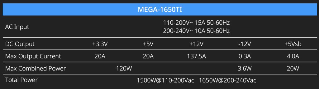 This is a monster GPU, 20A is available to the minor +3.3V and +5V rails with a whopping 137.5A available to the primary +12V rail. No problems powering even the MSI RTX 5090 Suprim with this power supply in the system (review HERE).
