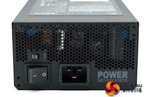 One side of the unit is home to the power switch, power connector and ‘eco switch'. You cannot use a standard power cable with this unit, you have to use a C19 power cable. Someone pointed out that it was a C21 power cable before, but these are just high temperature versions of a C19 cable with a maximum pin temperature of 155c which is not needed in this specific use case. A C19 cable is rated to 65C.