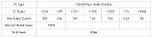 When both supplies are hooked into the main ATX sized chassis, the overall power rating is 500 watts. The architecture inside the main chassis frame combine the output of both units while generating the +3.3V, +5V and +12V outputs.