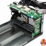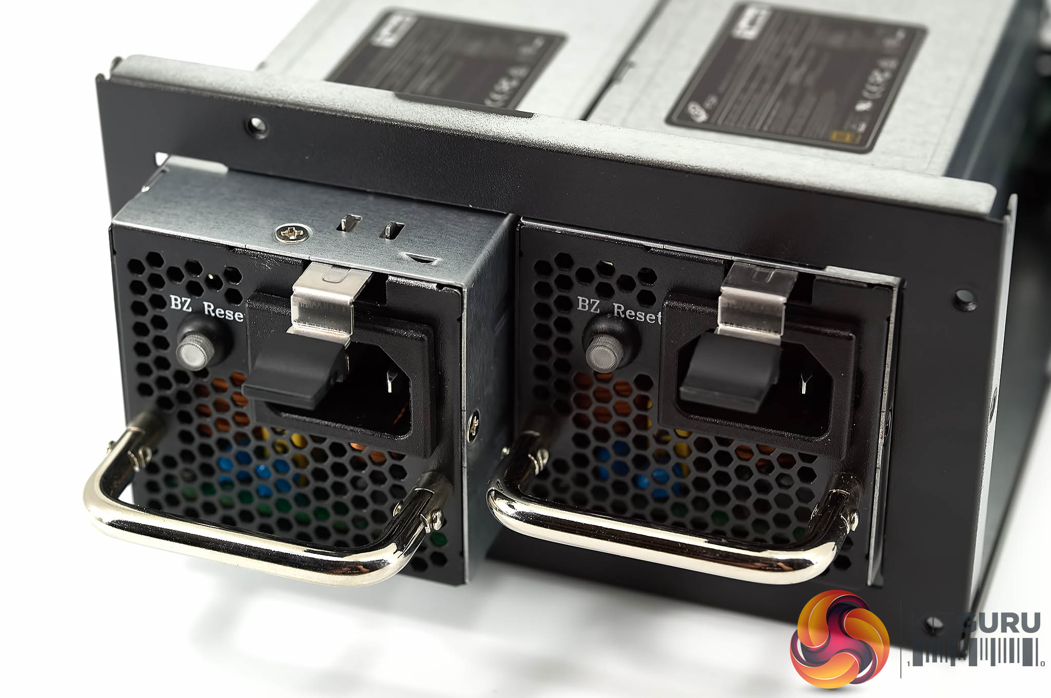 Each of the power supplies slides into the ATX housing and locks to the outer wall with a pin/lever system. Removing the power supplies is straightforward – push on the lever above the handle and pull out. Both are hot swappable, meaning if one fails, you can easily replace it without any downtime – this is incredibly important if you are running an important server or workstation and can't afford any downtime at all.