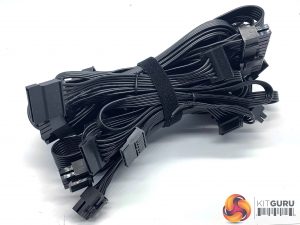 The cables are all ribbon style, for ease of routing during the build phase. There are four PCIe connectors to cater for multiple graphics card configurations.