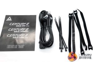 Inside the box, we see accessories on the right side along with literature, a power cable and two kinds of cable ties. Packaging is pretty good overall.
