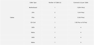 All of the included cables are the flat ribbon style to make routing of the system build as straightforward as possible. There are plenty of cables included, as would be expected from a 1050W PSU. None of the cables have in cable capacitors. Spacing between the cable connectors is 150mm. Cable gauge is mostly 18AWG. There are a total of 12 SATA cable connectors included.